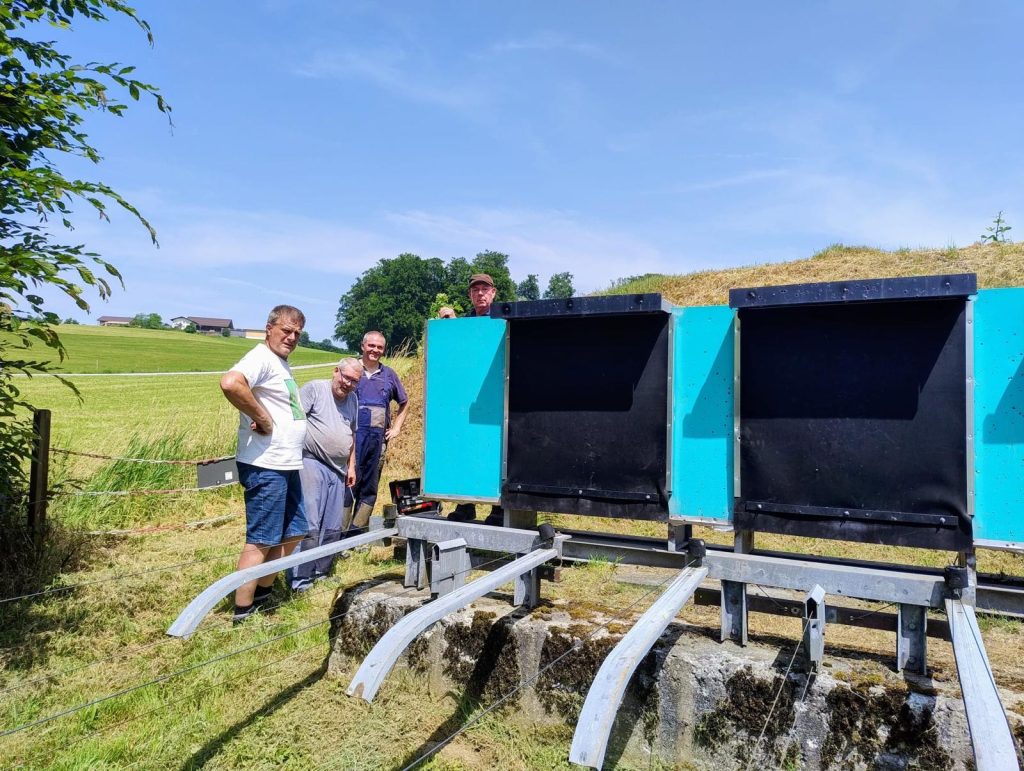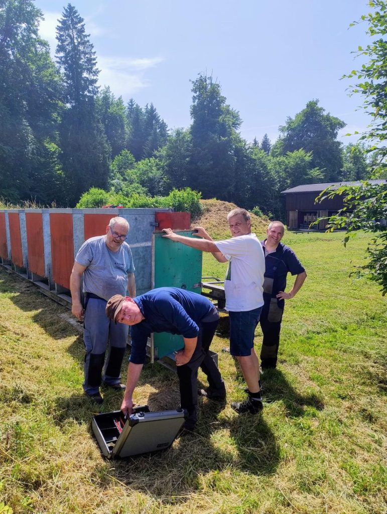 Bei sommerlich heissen Temperaturen machte sich das Kugelfangteam Dani Raunhardt, Christoph Rein, Thomas Stähli, René Arnold, Urs Scheidegger, Nikolai Fornaro, Linus Stähli und Markus Meier auf, die Kästen des 25m und 50m Stands zu leeren und zu reparieren. Zudem musste Thomi bei zwei Seitenblenden des Kugelfangs 50m insgesamt neun Durchschüsse (wie immer die entstanden sind) schweissen.